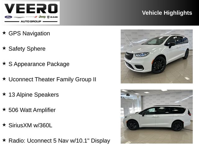 2026 Chrysler Pacifica Select, AWD, S Appearance Package, Uconnect Theater Family Group II, Safety Sphere, 13 Alpine Speakers, 360 Surround View Camera System, 506 Watt Amplifier, Amazon Fire TV Built-In, Connected Travel & Traffic Services, GPS Navigation, Heated front seats, Heated steering wheel, Integrated Voice Command w/Bluetooth, Memory seat, ParkSense Front/Rear Park Assist w/Stop, ParkView Rear Back-Up Camera, Power driver & Passenger seat, Power Liftgate, Uconnect 5 Nav w/10.1" Display, Seatback Video Screens, SiriusXM w/360L, Wheels: 20" x 7.5" S-Model Aluminum Design 1.