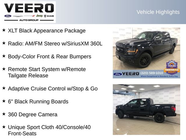 XLT, 4x4, XLT Black Appearance Package, 360 Degree Camera, 6" Black Running Boards, Adaptive Cruise Control w/Stop & Go, Body-Color Front & Rear Bumpers, Floor Shifter, Heated Front Seats, Power-Sliding Rear Window, AM/FM Stereo w/SiriusXM 360L, Remote Start System w/Remote Tailgate Release, 3.55 Axle Ratio, Unique Sport Cloth 40/Console/40 Front-Seats, Wheels: 18" Gloss Black.