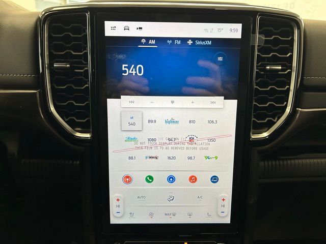 2025 Ford Ranger Lariat, 4x4 , Sport Appearance Package, Trailer Tow Package, Class IV Trailer Hitch Receiver, Convenience Package, Heated front seats, Heated steering wheel, Memory seat, Navigation system: Connected Navigation, Power driver & Passenger seat, B&O Sound System by Bang & Olufsen, Security system, SiriusXM Satellite Radio, 3.73 Axle Ratio, Wheels: 18" Machined Aluminum w/Dark Pockets, Wireless Charging Pad.