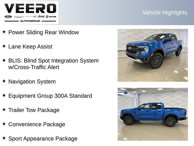 **XLT**Crew Cab**Velocity Blue Metallic Exterior**Ebony Cloth Front Bucket Seats**Convenience Package**Sport Appearance Package**Trailer Tow Package**Remote Start, Navigation, Wireless Charging Pad, Power Sliding Rear Window, Lane Keep Assist, BLIS: Blind Spot Integration System w/Cross-Traffic Alert, 120V/400W In-Cab & In-Bed Power Outlets, Class IV Trailer Hitch Receiver, SYNC 4A w/Connected Navigation, Wheels: 17" Gray-Painted Aluminum.