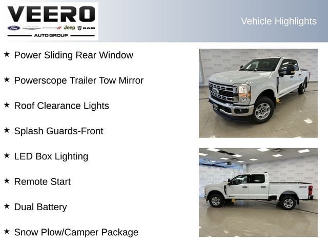 **Crew Cab**4X4**Remote Start**Snow Plow/Camper Package**Medium Dark Slate Cloth Seats**Front Bench Seat**360-Degree Camera**Power Sliding Rear Window, Powerscope Trailer Tow Mirrors, Roof Clearance Lights, Splash Guards-Front, LED Box Lighting, Dual Battery, BLIS w/Cross-Traffic Alert, Exterior Parking Camera Rear, LED Center High-Mounted Stop Lamp (CHMSL) Camera, Power Driver Seat, Rear Parking Sensors, SYNC 4, Preferred Equipment Package 613A.