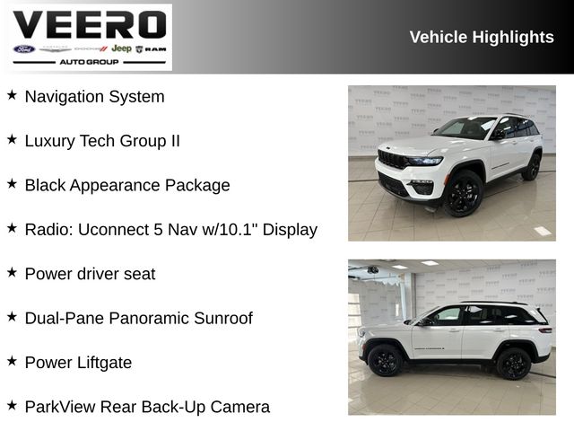 Limited, 4WD, Black Appearance Package, Luxury Tech Group II, Dual-Pane Panoramic Sunroof, Navigation System, Heated front seats, Heated rear seats, Heated steering wheel, Intersection Collision Assist System, ParkSense Front/Rear Park Assist w/Stop, ParkView Rear Back-Up Camera, Power driver & Passenger seat, Power Liftgate, Uconnect 5 Nav w/10.1" Display, Rearview Autodim Digital Display Mirror, Surround View Camera System, Ventilated Front Seats, Wheels: 20" x 8.5" Gloss Black Painted Aluminum.