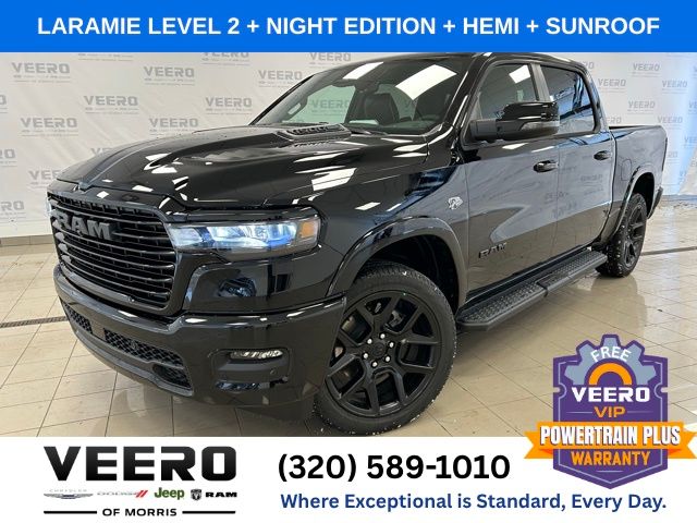 Diamond Black Crystal Pearlcoat 2026 Ram 1500 Laramie 4WD HEMI 5.7L V8 Multi Displacement VVT eTorque