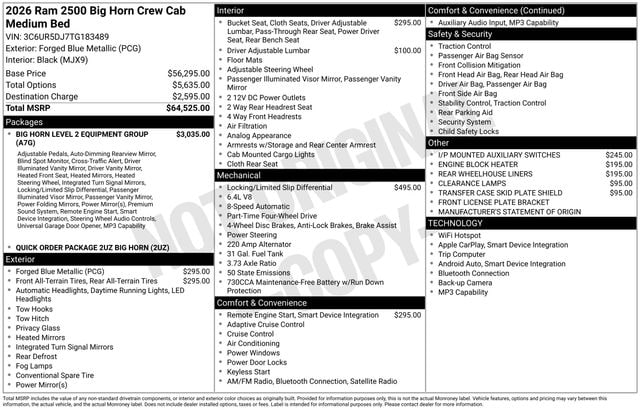 2026 Ram 2500 BIG HORN CREW CAB 4X4 6'4 BOX